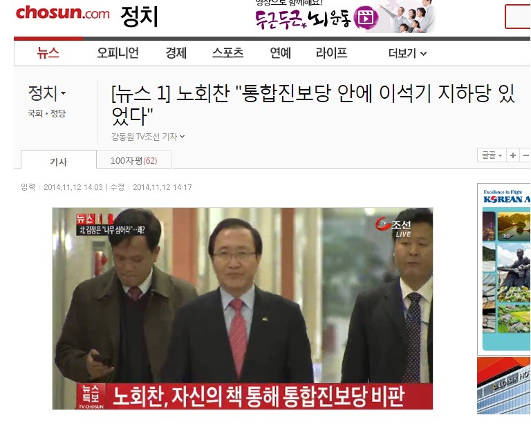 노회찬이 '노회찬 작심하고 말하다. 대한민국 진보, 어디로 가는가?'는 책을 내자 조중동을 비롯한 언론들이 연일 기사와 인터뷰로 홍보에 나섰다. 책 제목보다는 "통합진보당 안에 이석기 지하당 있었다"가 메인이고, 대부분의 결론은 헌재가 올해 안에 결론 내릴 것이라 예상되는 ‘진보당 해산청구 결정’에 노회찬의 발언이 어떤 영향을 끼칠지 주목된다는 내용이다.