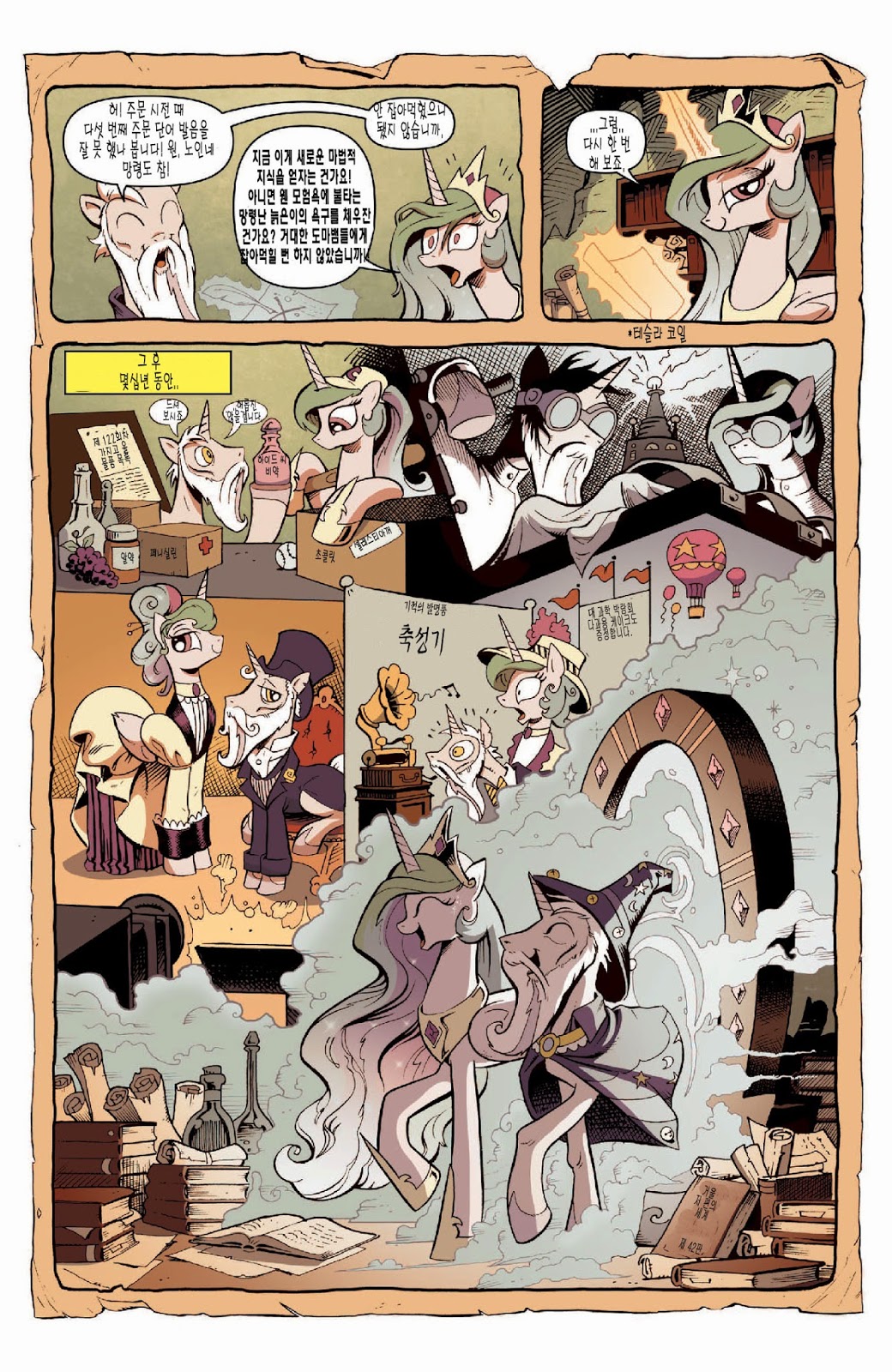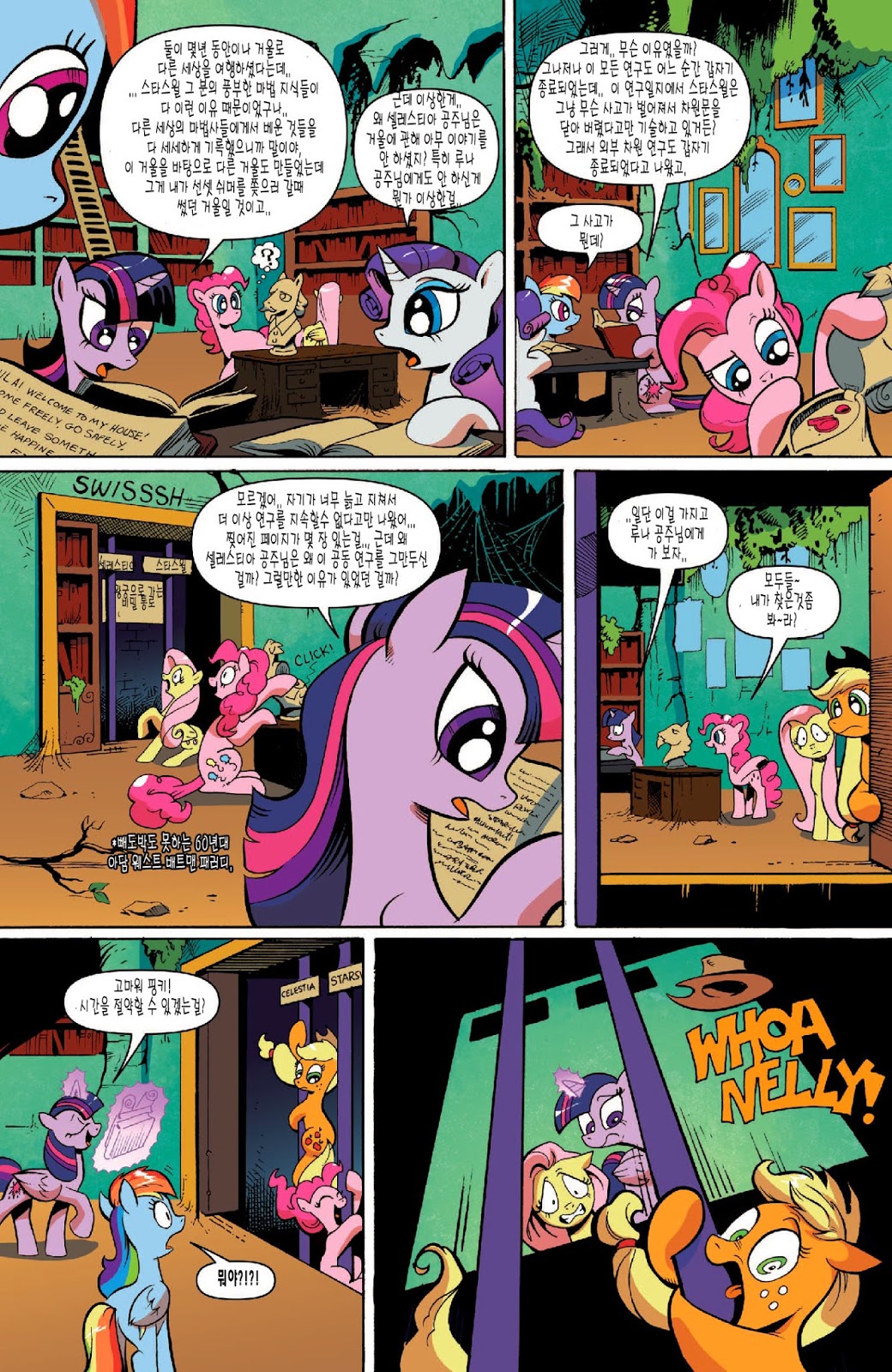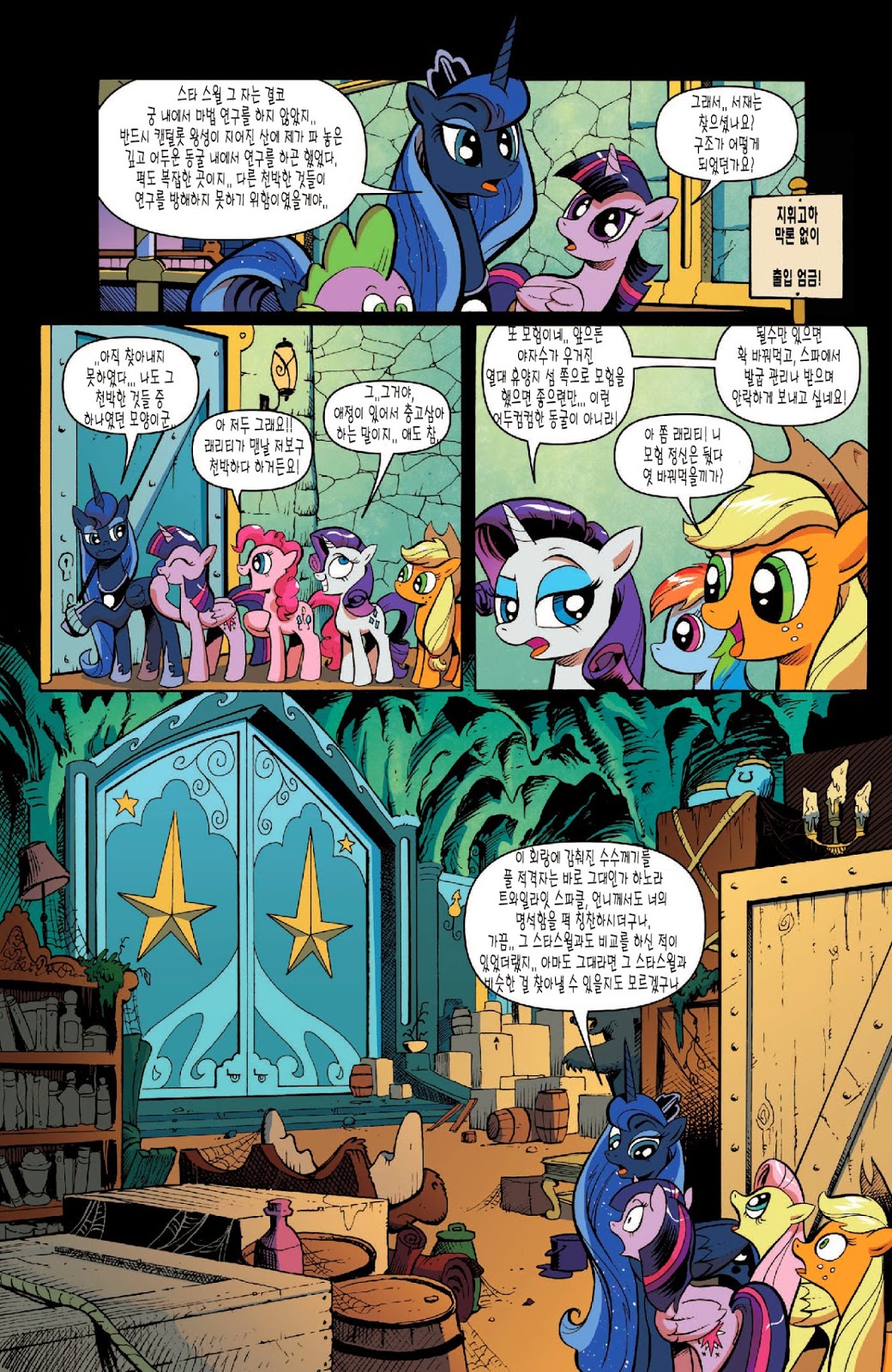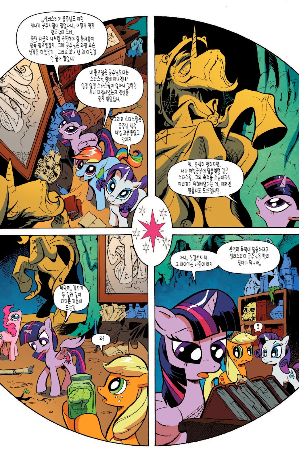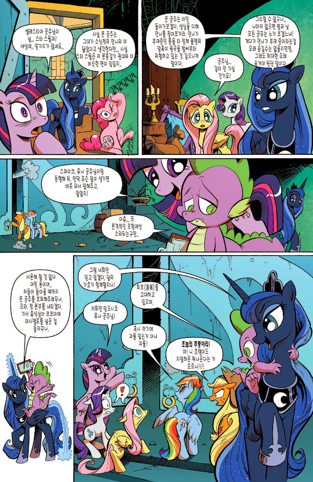 답지 않은 심각한 전개가 일품인 도입부였습니다. 트와일라잇의 자아성찰과, 지금껏 배경 소재로만 나오고 별 설정이 없었던 수염 난 스타스윌의 인상깊은 등장이 볼거리였죠. 아직은 미숙한 군주인 셀레스티아를 루나보다 먼저 달로 갈 각오를 하고 크게 질책하는 소신있는 충신의 모습에 꽤 인상 깊었습니다.
